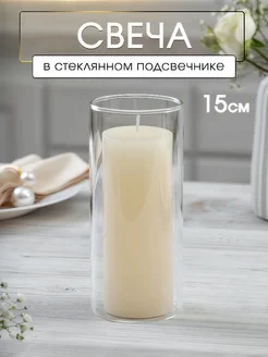 Свеча интерьерная в стеклянном подсвечнике 15 см