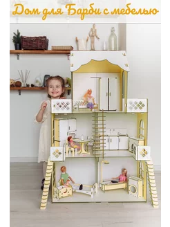 Кукольный дом и мебель для Барби (цвет желтый)