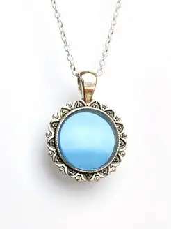 Серебряный кулон оберег с голубым зеркалом Узорный