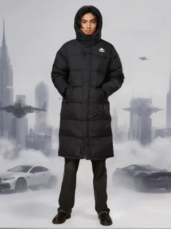 Пуховик зимний длинный пальто теплое пуховое оверсайз куртка