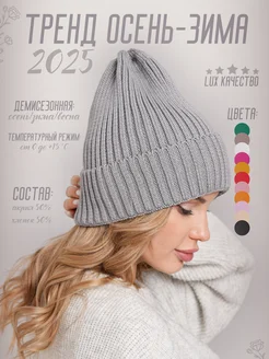 Шапка демисезонная вязаная с отворотом бини тонкая