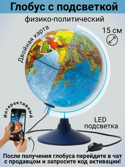 Глобус интерактивный физико-политический, 15 см с подсветкой