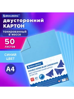 Картон цветной А4 ТОНИРОВАННЫЙ В МАССЕ, 50 листов, СИНИЙ, 22