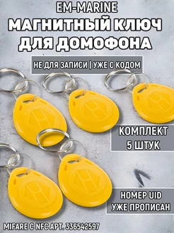 Ключ для домофона EM-Marine TS желтый 5 шт (не NFC)