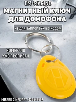 Ключ для домофона магнитный EM-Marine желтый (не NFC)
