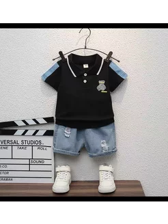 Костюм для малыша летний комплект джинсовые шорты и футболка