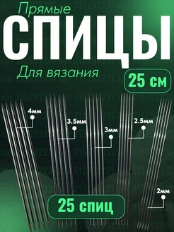 Набор прямых спиц для вязания 25 штук, 25 см