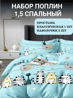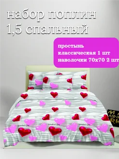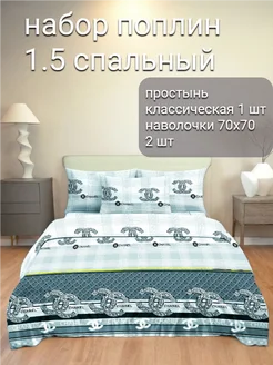 Постельное белье 1.5 спальное хлопок поплин, 70х70 см