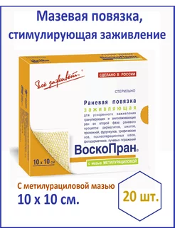 Воскопран повязка ранозаживляющая 10х10см 20 шт
