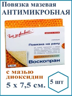 Воскопран, антимикробная повязка 5х7,5см 5 шт