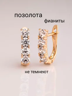 Серьги под золото медицинский сплав с фианитами бижутерия