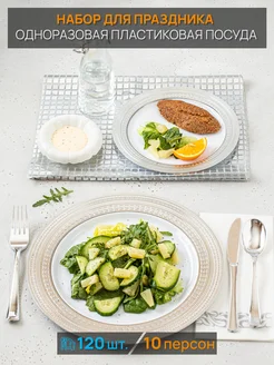 Одноразовая пластиковая посуда набор для праздника на 10 чел