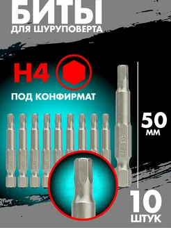 Биты для шуруповерта H4 50 мм под конфирмат евровинт 10 шт