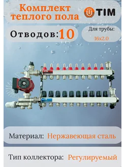 Коллектор для теплого пола на 10 отводов с насосом