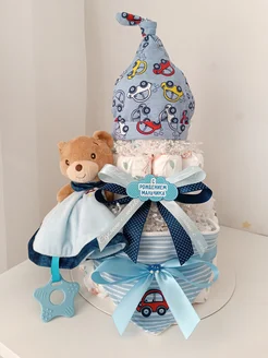 Торт из памперсов Мишка и Машинки на рождение мальчика