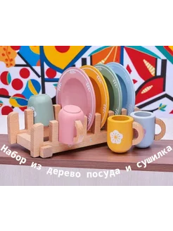 Набор из дерево сушилка с посудой игрушечный