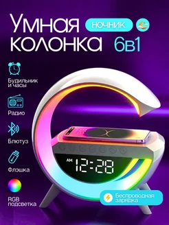 Блютуз колонка ночник с беспроводной зарядкой и подсветкой