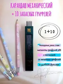Карандаш механический 2.0 мм + 10 запасных грифелей