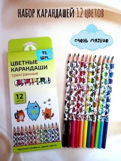 Набор карандаши цветные 12 цветов мягкие