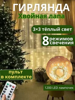 Гирлянда штора мишура 3 на 3 теплый белый с пультом