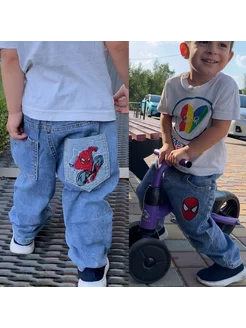 Джинсы джоггеры с принтом