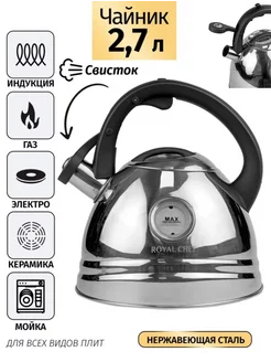 Чайник со свистком 2,7 л с окошком для уровня воды