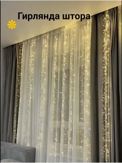 Новогодняя гирлянда штора Хвойная лапа 300х200см