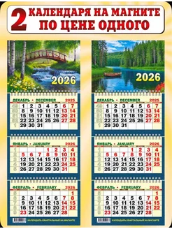 Календарь 2026 настенный квартальный на магните МИНИ 2шт