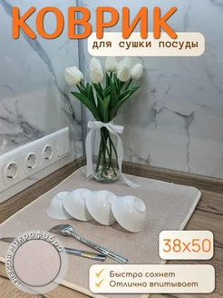 Коврик впитывающий для сушки посуды 38x50 см бежевый