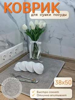 Коврик впитывающий для сушки посуды 38x50 см серый