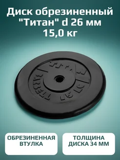 Диск для штанги, блин обрезиненный d 26 мм 15 кг