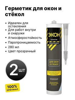 Стекольный герметик силиконовый прозрачный 280мл, 2шт