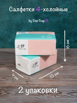 Салфетки бумажные 130 шт. 4 слоя 16х9см (2 мягкие упаковки)
