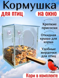 Кормушка на присосках подвесная прозрачная для птиц на окно