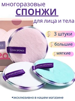 Спонжи для умывания снятия макияжа масок скрабов 3шт. набор