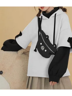 Толстовка с капюшоном и сумкой Белый-чёрный