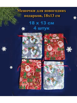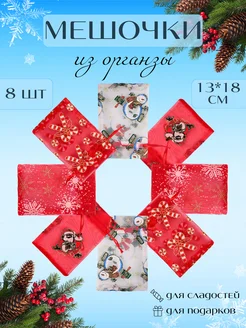 Новогодние мешочки для подарков из органзы 13х18 см 8 шт