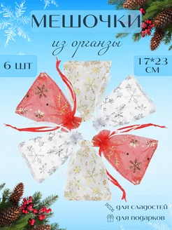 Новогодние мешочки для подарков из органзы 17Х23 см 6 шт