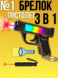 Брелок игрушка пистолет лазерная указка фонарик свисток