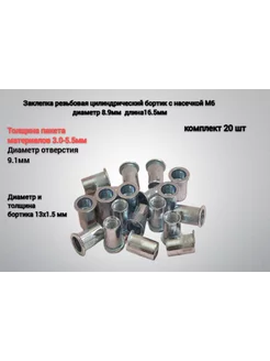 Заклепка резьбовая стальная М6 в металл от 3 до 5.5 мм