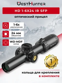 Прицел HD 1-6X24 IR SFP сетка копытце с моноблоком