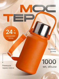 Термос 1 литр для чая металлический с кнопкой и чашкой