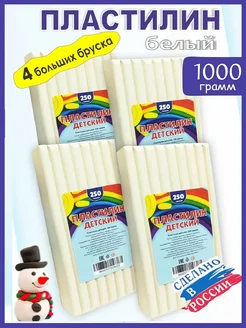 Пластилин классический белый брусок, 250 г. 4 штуки