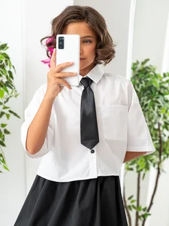 Блузка школьная рубашка укороченная белая