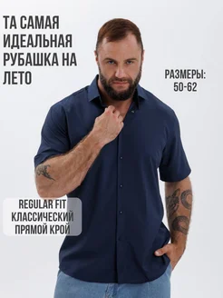 Рубашка хлопковая стрейч с коротким рукавом и воротником