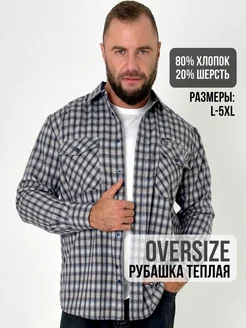 Рубашка в клетку теплая с длинным рукавом и воротником