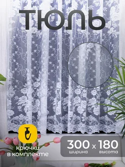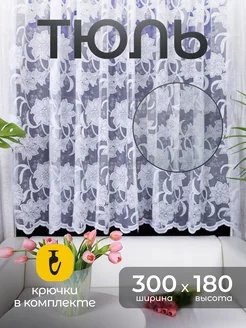 Тюль короткая на кухню 300х180
