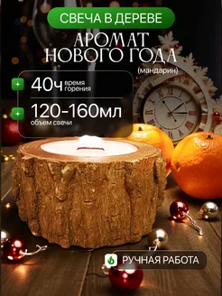 Свеча в дереве с ароматом Новогодней ночи (мандарин)
