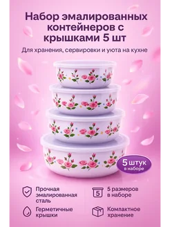 Контейнеры эмалированные с крышками 5 размеров для кухни