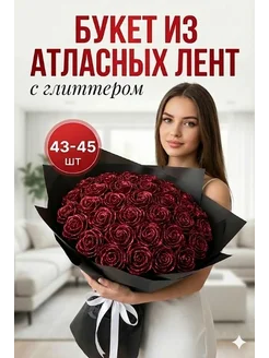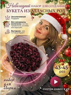 Букет из атласных роз лент для сборки бордовый с гирляндой